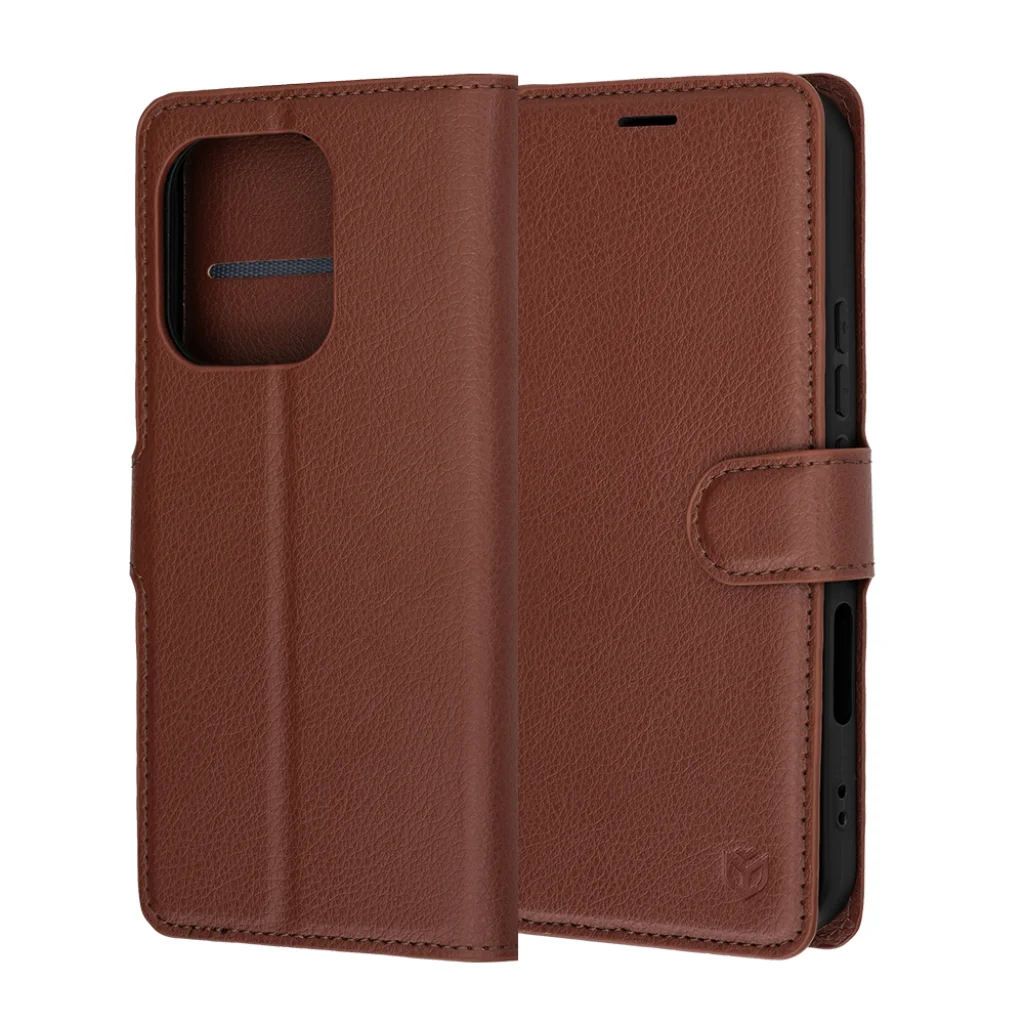 A tok külseje kiváló minőségű, elegáns textúrájú barna bőrből készült, amely nemcsak stílusos megjelenést biztosít, hanem csúszásmentes fogást is nyújt. A készüléket belül egy rugalmas, fekete színű TPU (szilikon) keret tartja stabilan a helyén. Ez a dupla rétegű kialakítás hatékony, 360 fokos védelmet garantál a karcolások, por, szennyeződések és az esetleges leejtésekből származó ütések ellen.