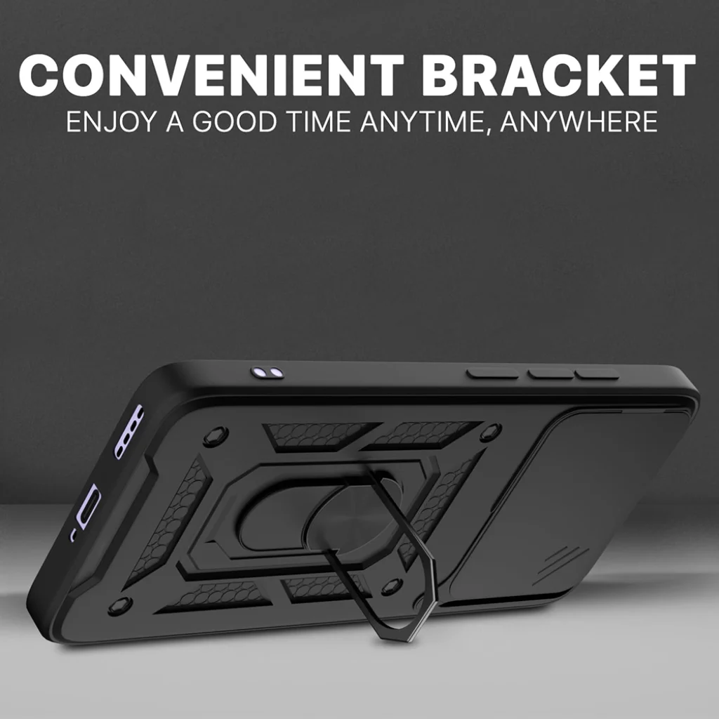 - Elcsúsztatható kamerafedél: A tok különleges elcsúsztatható fedéllel rendelkezik, amely megvédi a Realme 16 Pro kameráját a karcolásoktól és az ütésektől, amikor épp nem használod. Nincs szükség külön kamera védő üvegre!