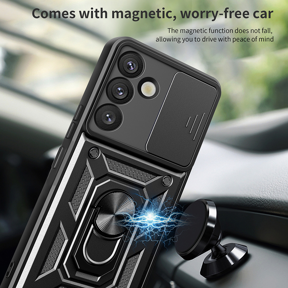 Az integrált, 360°-ban forgatható gyűrűtartó nem csupán stílusos "cd pattern" textúrájával emelkedik ki, hanem rendkívül praktikus is. Biztos fogást biztosít telefonjának, megelőzve a kiesést, és kényelmes kitámasztóként funkcionál, így élvezheti a videózást, filmnézést vagy videóhívásokat kéz nélkül, bárhol, bármikor. Ráadásul a gyűrűtartóba épített "magnetic iron sheet" fémlemeznek köszönhetően a tok könnyedén és stabilan rögzíthető mágneses autós tartókhoz, biztosítva a gondtalan navigációt vezetés közben.