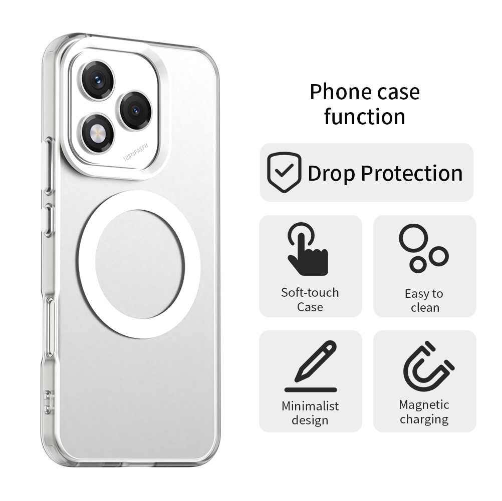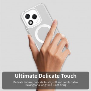 Ez a tok tökéletes egyensúlyt teremt az esztétika és a funkcionalitás között. A minimalista, átlátszó design lehetővé teszi, hogy Honor 400 Lite készüléke eredeti szépsége érvényesüljön, míg a beépített fehér MagSafe gyűrű elegáns és modern kiegészítőként funkcionál. Az "Ultimate Delicate Touch" technológia révén a tok felülete kivételesen selymes és kellemes tapintású, a precízen megmunkált, független gombok pedig tökéletes visszajelzést adnak. A tökéletes illeszkedés és a kényelmes fogás garantálja, hogy a telefon használata hosszú távon is élvezetes és fáradtságmentes marad.