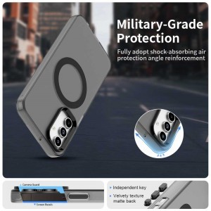 - MagSafe kompatibilitás: A tokba integrált erős mágnesgyűrű biztosítja a zökkenőmentes és stabil kapcsolódást az összes MagSafe tartozékkal, legyen szó vezeték nélküli töltőről, kártyatartóról vagy egyéb kiegészítőről. Kiváló tapadása meggátolja a véletlen leesést, így magabiztosan élvezheti a MagSafe ökoszisztémát.
