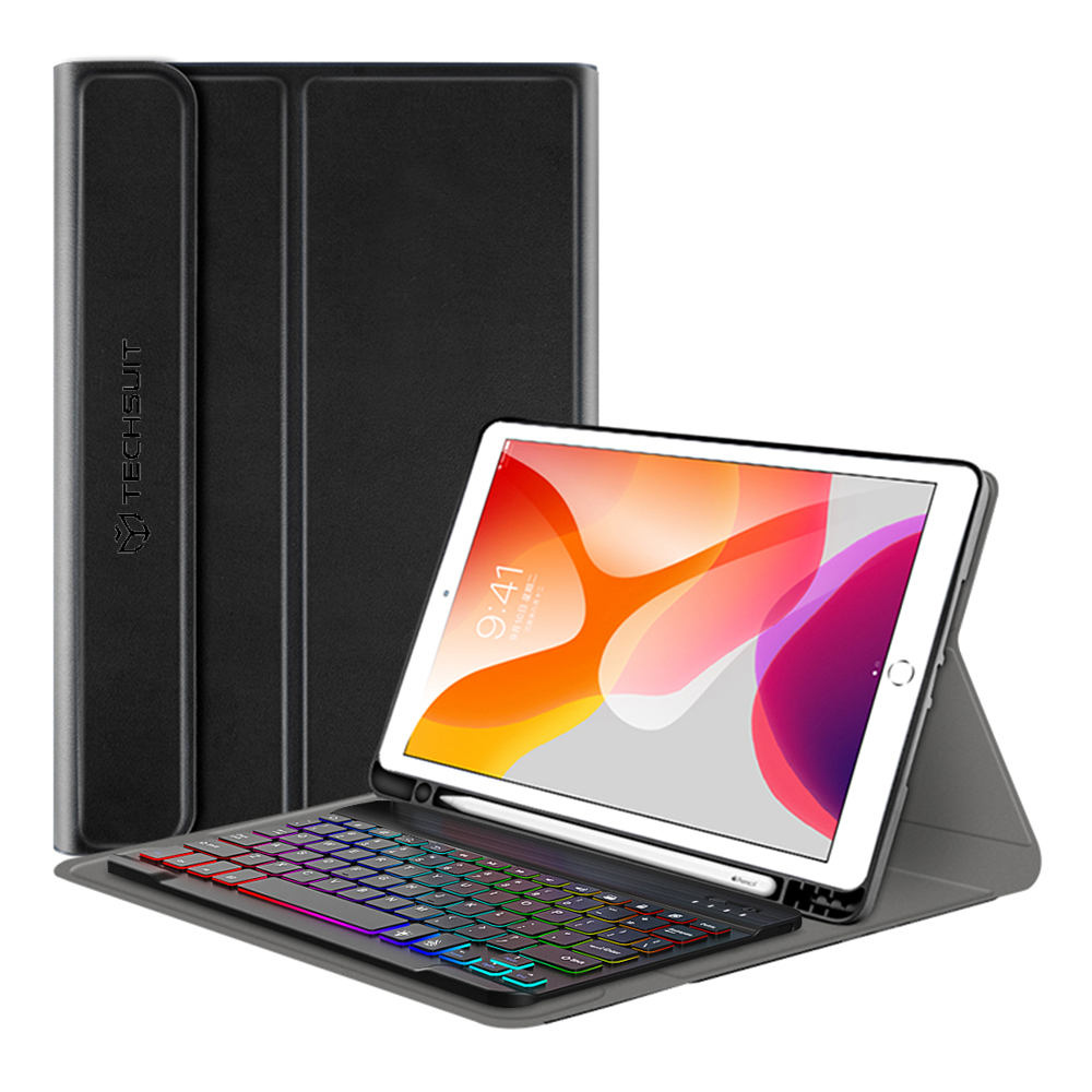 Termék leírás Techsuit - CozyTab Tok (ceruzatartóval/RGB vezeték nélküli mágneses billentyűzettel) - iPad 10.2 (2019 / 2020 / 2021) - Fekete tok ANGOL NYELVŰ!