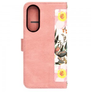 - A belső részen és a tok elejének egy sávján található élénk virágos minta – fehér alapon rózsaszín, sárga virágokkal és zöld levelekkel – friss és egyedi karaktert ad a készüléknek.