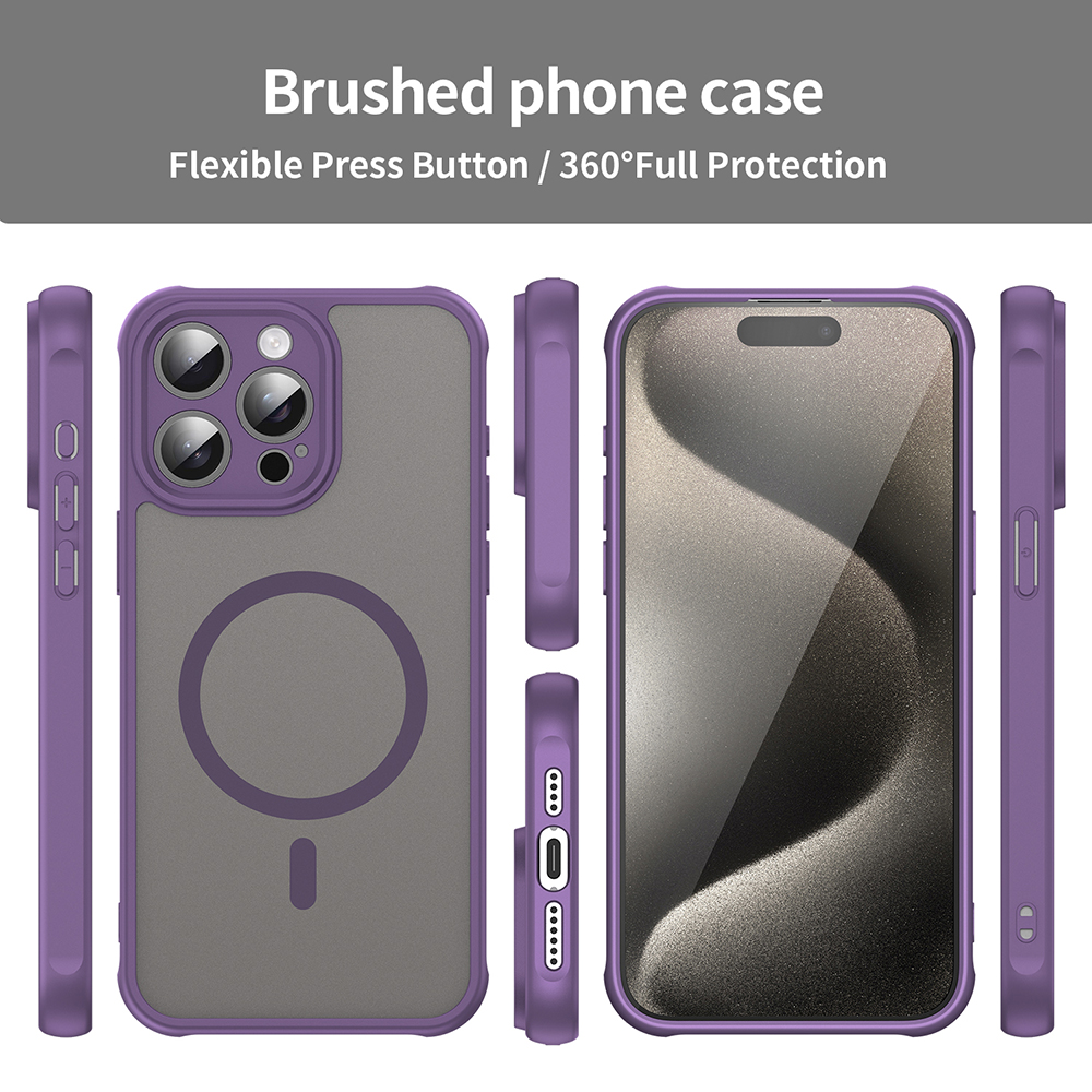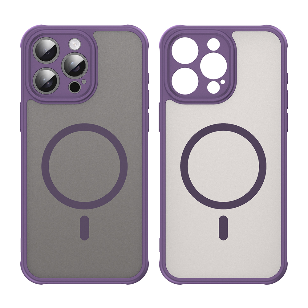 - Stílusos megjelenés: A mély lila keret és a matt szürke áttetsző hátlap modern és kifinomult kombinációt alkot, kiemelve az iPhone 15 Pro prémium dizájnját.