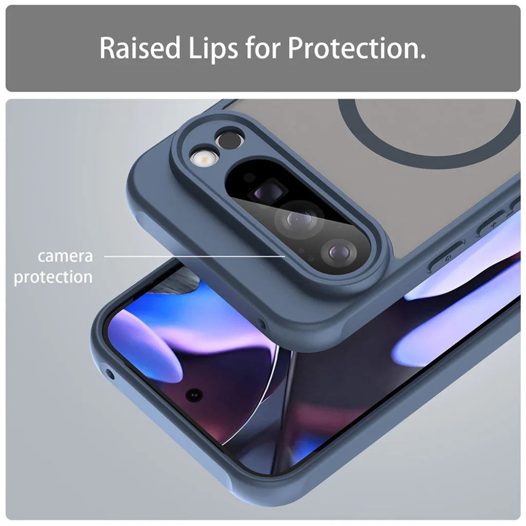 A Techsuit - HaloFrost II MagSafe tok pontosan illeszkedik a Google Pixel 10 Pro XL készülékhez, biztosítva az összes port, gomb és a kamera akadálytalan hozzáférését. A tengerészkék keret harmonikus kiegészítője a telefonnak, miközben garantálja a mindennapi használat során elengedhetetlen tartósságot és megbízhatóságot.
