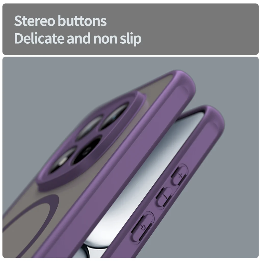 A tok esztétikai értéke is kiemelkedő. A letisztult lila keret és a kameramodul körüli hangsúlyos kialakítás modern és stílusos megjelenést kölcsönöz telefonodnak. A hátlap matt, enyhén szaténos ("brushed") felületével nemcsak elegáns, de a fényt is szórt módon szűri, így a Xiaomi logó diszkréten, mégis láthatóan sejlik át, anélkül, hogy túlságosan exponált lenne. Ez a felület továbbá ellenáll az ujjlenyomatoknak, és hozzájárul a prémium, professzionális megjelenéshez. Az oldalsó sztereó gombok rugalmasak és rendkívül érzékenyek, biztosítva a könnyű hozzáférést a készülék funkcióihoz, miközben védelmet nyújtanak a portól és a szennyeződésektől. A tok dedikált kialakítása garantálja, hogy minden port és kivágás tökéletesen illeszkedik a Xiaomi Redmi Note 15 Pro 5G készülékhez.