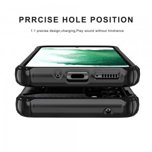 A tok kiváló minőségű, rugalmas TPU (hőre lágyuló poliuretán) és tartós PC (polikarbonát) anyagokból készült, melyek kombinációja nemcsak véletlenszerű, hanem kényelmes fogást is biztosít. A fekete színű, karbonszálas mintázatú elemek modern és ellenálló megjelenést kölcsönöznek a készüléknek, miközben kiemelik annak prémium jellegét.