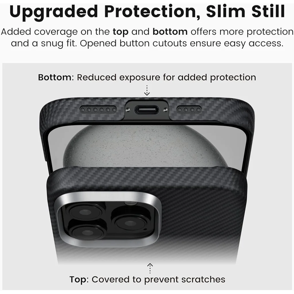 - Feljavított védelem: A tok kiterjed a telefon felső és alsó éleire is, csökkentve az expozíciót és extra védelmet nyújtva a karcolások és ütések ellen.
