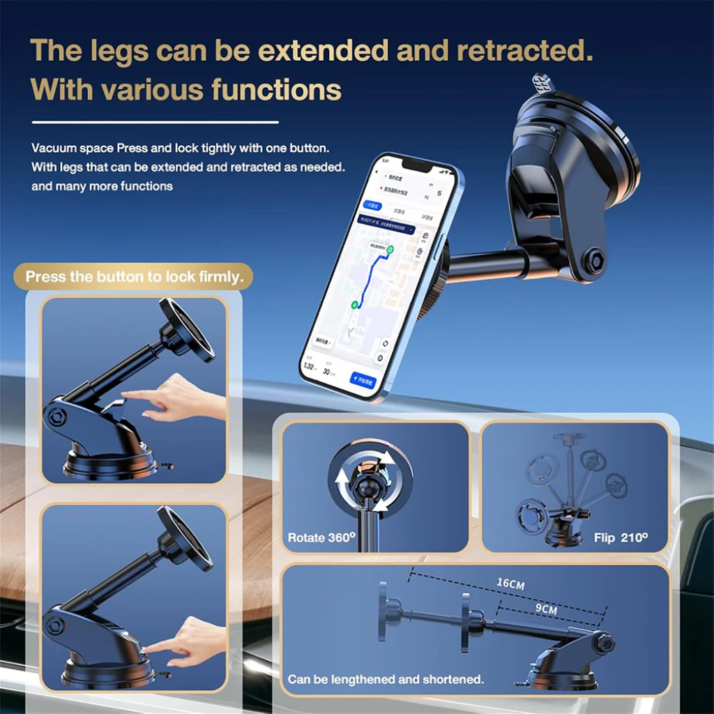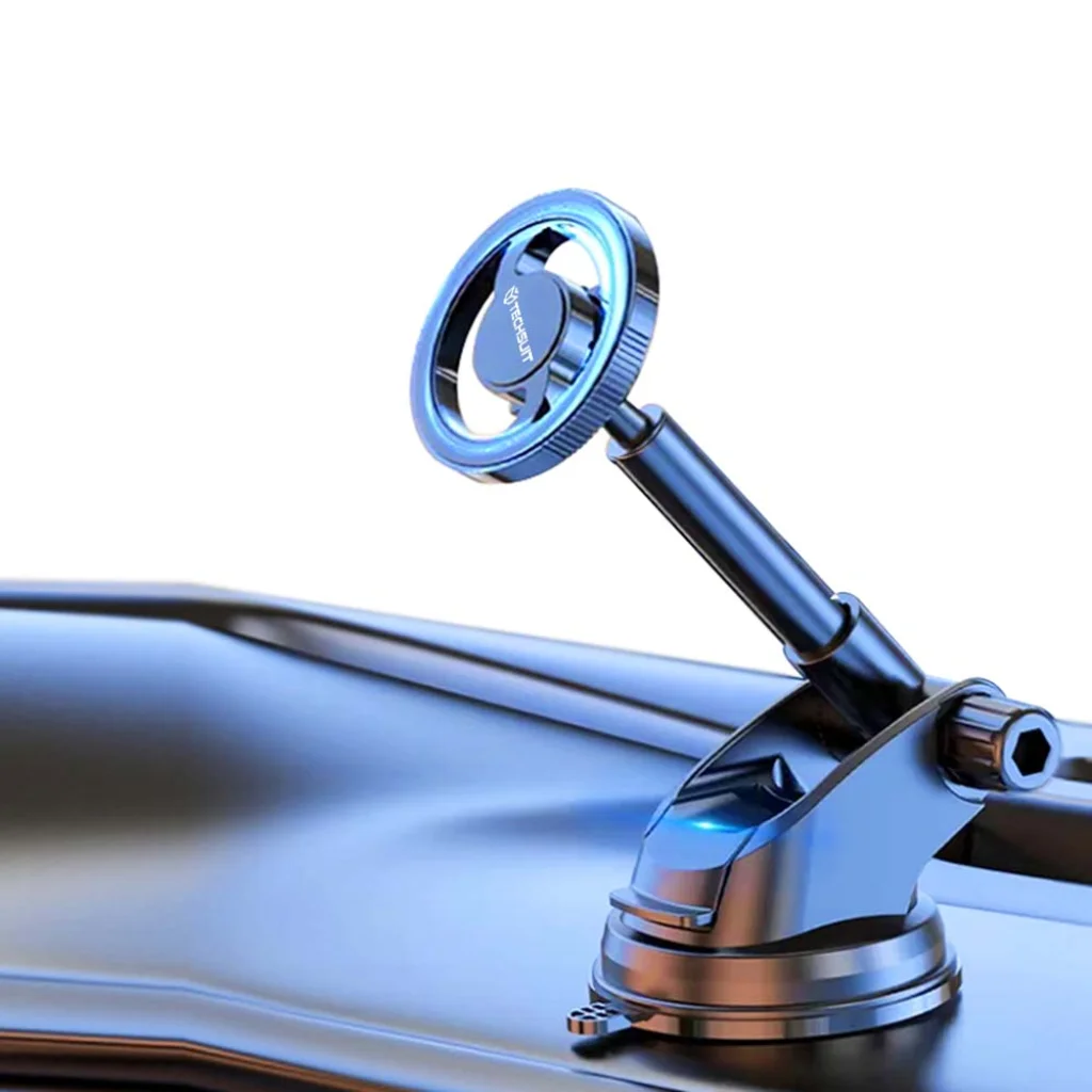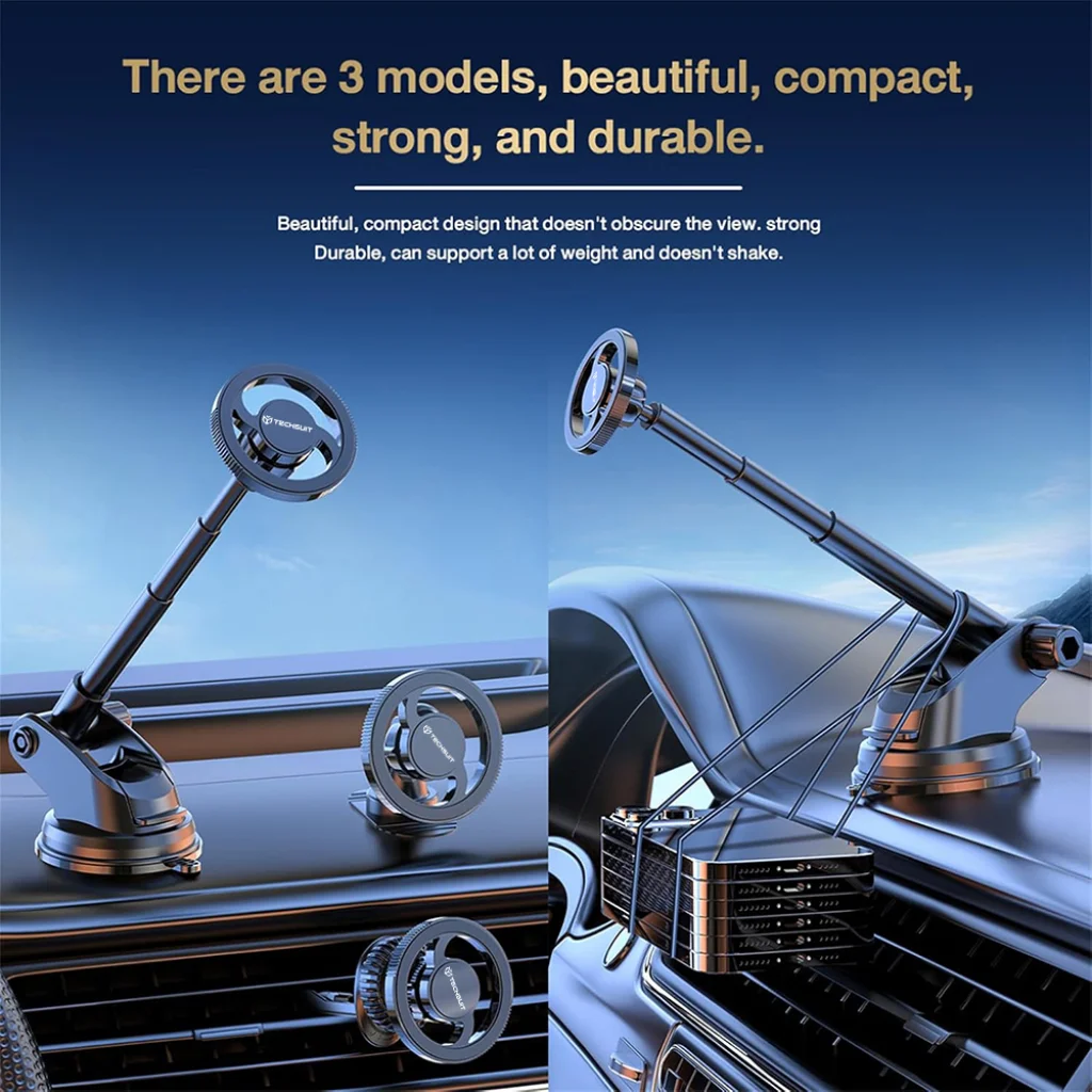 Termék leírás Techsuit - MagProX (S12) autós tartó - Műszerfalra, MagSafe kompatibilis, 360°-os forgatás, tapadókorongos rögzítőtalp - Fekete