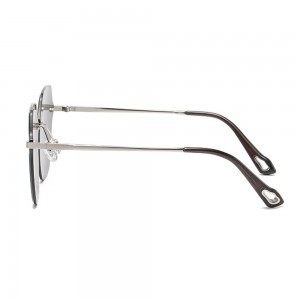 Ez a keret nélküli modell egyedi, hatszögletű vagy enyhén nyolcszögletű lencsékkel rendelkezik, amelyek azonnal magukra vonzzák a tekintetet. Az ezüst színű fém szárak tökéletesen harmonizálnak az átmenetes szürke lencsékkel, amelyek nemcsak stílusos megjelenést biztosítanak, hanem kifinomult árnyalatot is adnak. A lencsék méretüknek köszönhetően optimális védelmet nyújtanak, miközben kiemelik viselője arcának szépségét.
