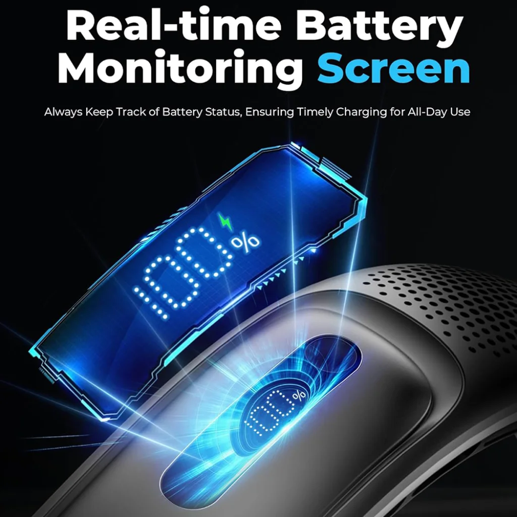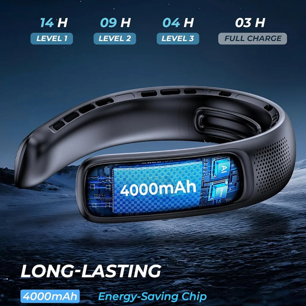 Termék leírás Techsuit - Nyakventilátor (S11) - Hordozható, szilikon tartó, 4x légáramlás, digitális kijelző, 4000mAh, 4800RPM - Fekete