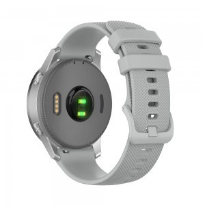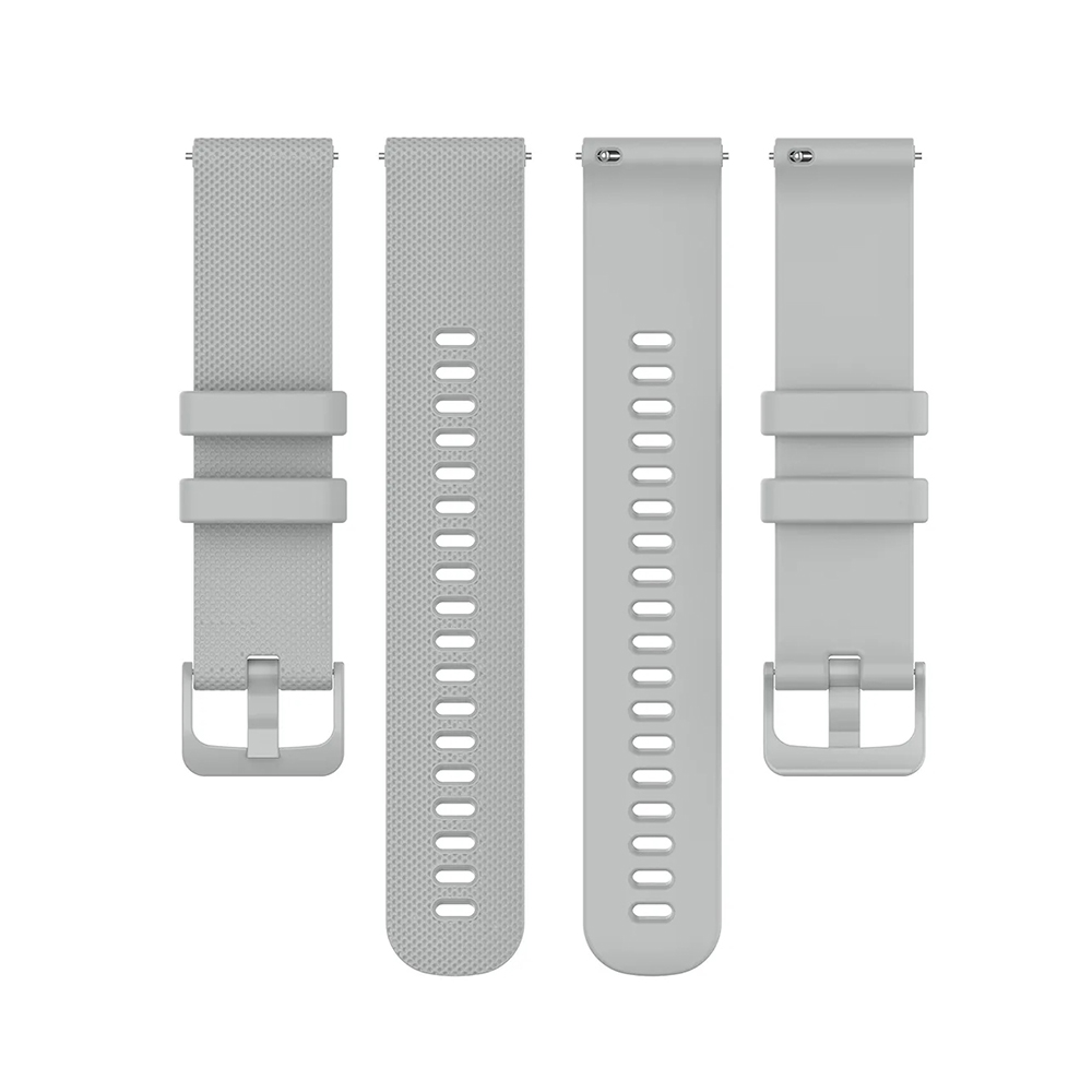 A szíj kiváló minőségű, puha és rendkívül rugalmas szilikon anyagból készült, amely kivételes kényelmet biztosít a nap 24 órájában. A felületén található finom, texturált mintázat nemcsak egyedi és sportos megjelenést kölcsönöz, hanem javítja a szellőzést, megakadályozva a bőr irritációját izzadás esetén. A klasszikus, tartós csat garantálja a biztonságos illeszkedést minden csuklóméretre, míg az elegáns szürke szín időtálló és sokoldalú, könnyen illeszkedik bármilyen ruhatárhoz.