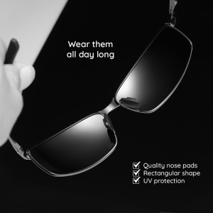 A prémium minőségű fém keret nemcsak elegáns megjelenést kölcsönöz a napszemüvegnek, hanem kiváló ellenállást és hosszú élettartamot is biztosít. A gondosan kialakított, minőségi orrpárnák maximális kényelmet nyújtanak még hosszan tartó viselet esetén is. A téglalap alakú dizájn időtlen eleganciát és modern megjelenést biztosít, amely bármilyen stílushoz jól illeszkedik.