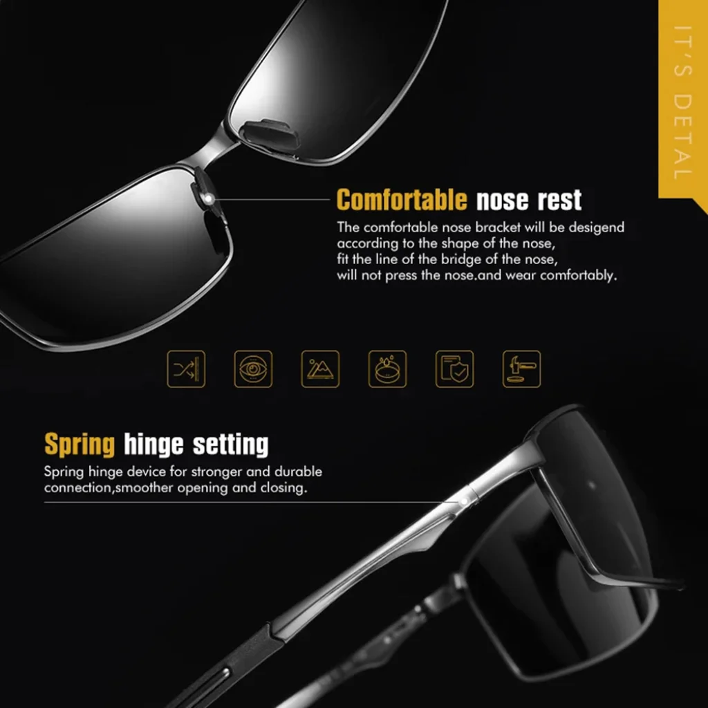 A Techsuit 559 polarizált napszemüveg a tökéletes választás azoknak a modern férfiaknak, akik stílust, kényelmet és megbízható szemvédelmet keresnek egyetlen elegáns kiegészítőben.