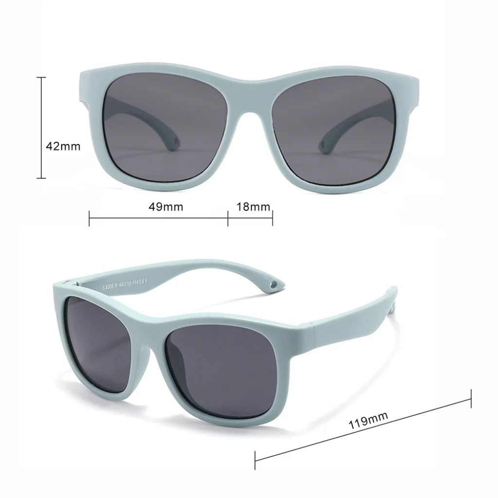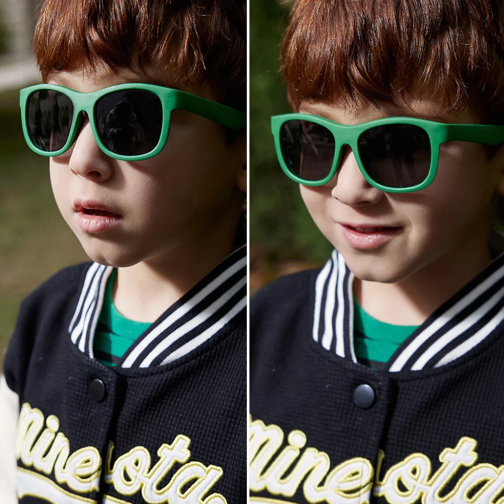 - Rendkívül rugalmas és törhetetlen keret: A napszemüveg kerete prémium minőségű, rugalmas anyagból készült, amely ellenáll a csavarásnak, hajlításnak és az esésnek. A 360°-ban hajlítható és forgatható kialakításnak köszönhetően szinte elpusztíthatatlan, így tökéletes választás az aktív, játékos gyermekek számára. Nincs többé aggodalom a törött napszemüveg miatt!