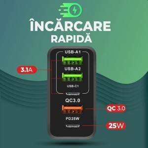 - 1x Type-C PD 25W port: Dedikált Power Delivery port a kisebb eszközök, például okostelefonok vagy kisebb tabletek villámgyors töltéséhez.