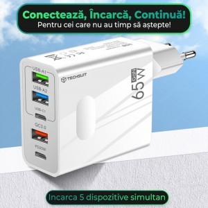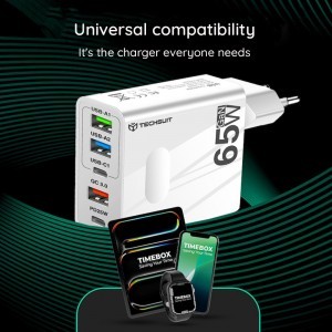 A Techsuit PentaXPower töltő 65W-os összteljesítményével forradalmasítja a töltési élményt. A beépített GaN (Gallium-nitrid) technológia nemcsak hihetetlenül hatékony, hanem kompakt méretet is biztosít, így a töltő még erősebb és gyorsabb, mint valaha. Képes akár egy Huawei telefont is teljes mértékben feltölteni körülbelül 1 óra alatt, így Önnek több ideje marad a fontos dolgokra.