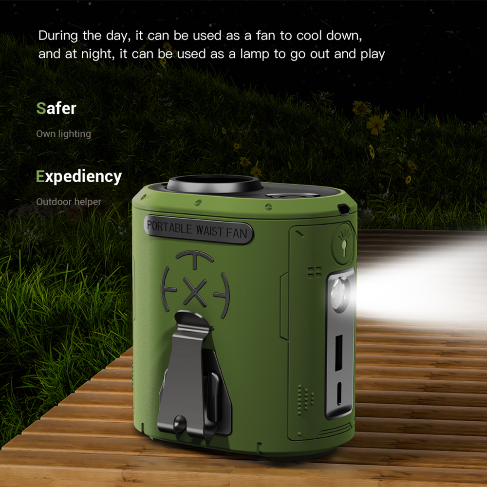Termék leírás Techsuit - Prémium Hordozható Mini Ventilátor (Z14) - Powerbankkal, Újratölthető, 5 Szélsebességgel, Övcsattal, 5000mAh - Narancssárga