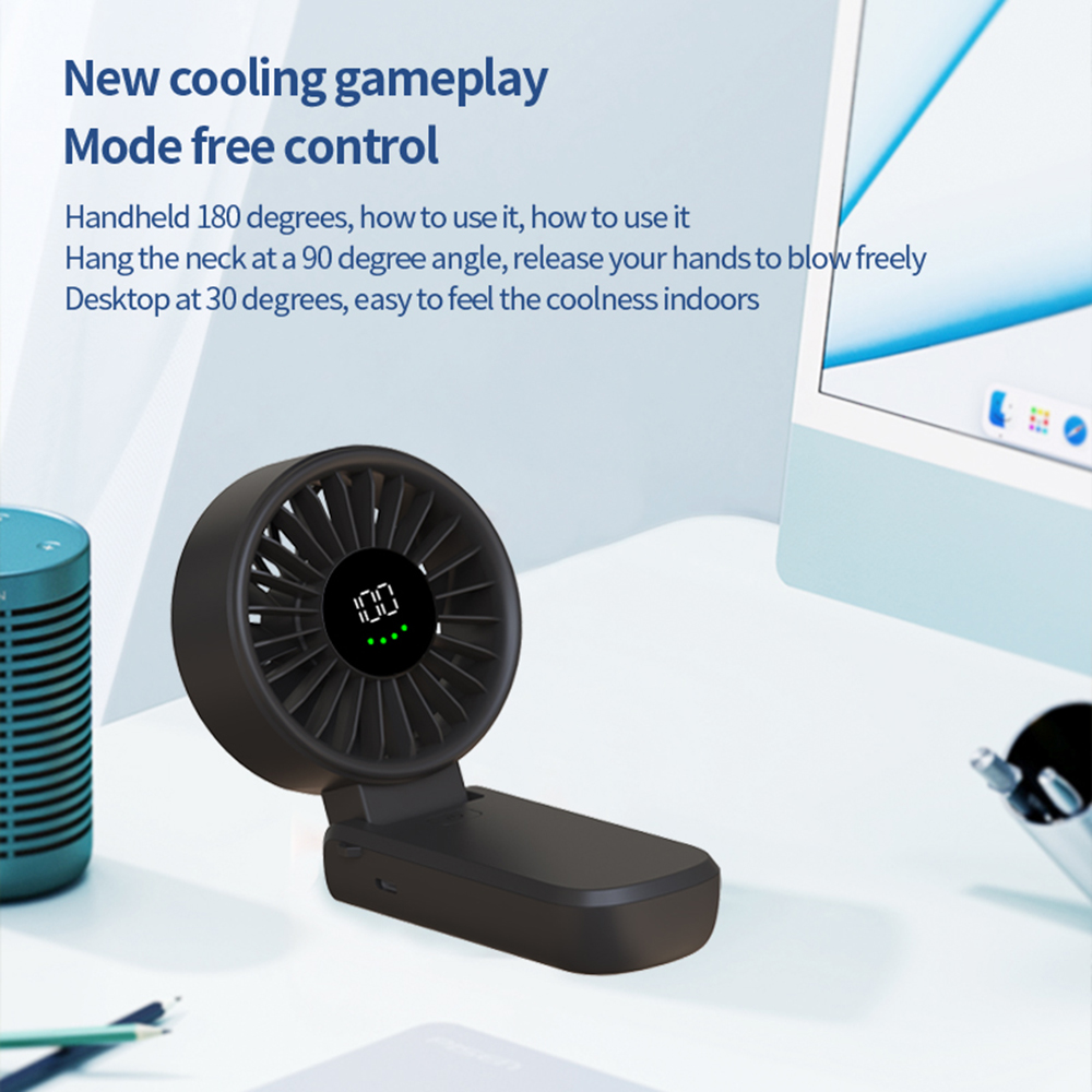 - Többfunkciós, Összecsukható Kialakítás: A Techsuit A10 rendkívül sokoldalú. Használhatja kényelmesen kézi ventilátorként, vagy egyszerűen összecsukhatja, és asztali ventilátorrá alakíthatja (akár 30 fokos szögben), így felszabadítva kezeit. Az innovatív 90 fokos nyakrész lehetővé teszi, hogy akár felakassza is, a tökéletes légáramlás érdekében.