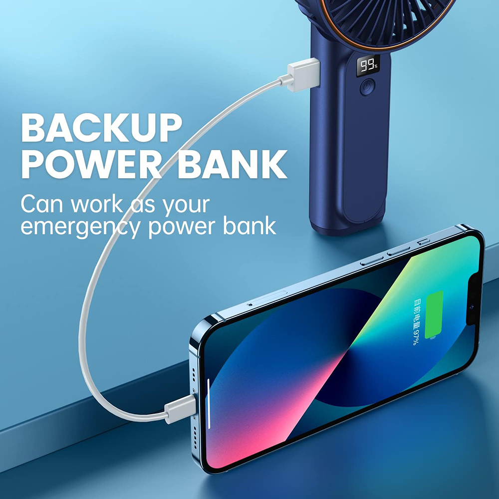 Termék leírás Techsuit - Prémium Mini Kézi Ventilátor (M12) - LED digitális kijelzővel, USB-C tölthető, 6 szélsebesség, 5000mAh - Kék