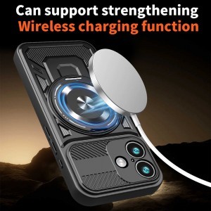 - Beépített kitámasztó gyűrű: A hátoldalon található multifunkcionális mágneses gyűrű beépített kitámasztóként funkcionál. Stabilan megtartja telefonját vízszintes és függőleges pozícióban egyaránt, ideális videó nézéshez, videóhívásokhoz vagy böngészéshez. A gyűrű 0-360°-ban elforgatható és 0-150°-ban állítható dőlésszögben, így mindig megtalálja a tökéletes látószöget.