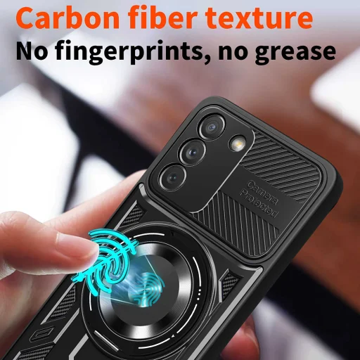 - Prémium anyaghasználat és ujjlenyomat-mentes felület: A strapabíró anyag és az elegáns karbon szálas textúra ellenáll az ujjlenyomatoknak és a zsírosodásnak, megőrizve a tok makulátlan és stílusos megjelenését hosszú távon.