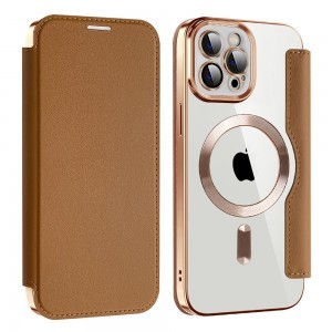 A tok egyik legkiemelkedőbb tulajdonsága a beépített mágneses gyűrű, amely garantálja a tökéletes MagSafe kompatibilitást. Ezáltal a vezeték nélküli töltés és a MagSafe tartozékok használata is zökkenőmentes marad. Az átlátszó hátlap kiemeli az iPhone 12 Pro Max eredeti, letisztult dizájnját, míg a stílusos, galvanizált keret (electroplated bezel) elegáns, rozéarany/barna árnyalatban pompázik, tovább fokozva a telefon prémium megjelenését.
