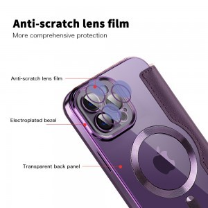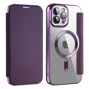 - Prémium kivitelezés és elegancia: A tok kiváló minőségű szintetikus bőrből készült külsővel és puha, imitált mikroszálas belsővel rendelkezik, mely gyengéden óvja telefonját. Az átlátszó hátlap és az elektrokémiai eljárással készült (electroplated) lila keret tökéletes összhangot teremt a telefon eredeti szépségével.