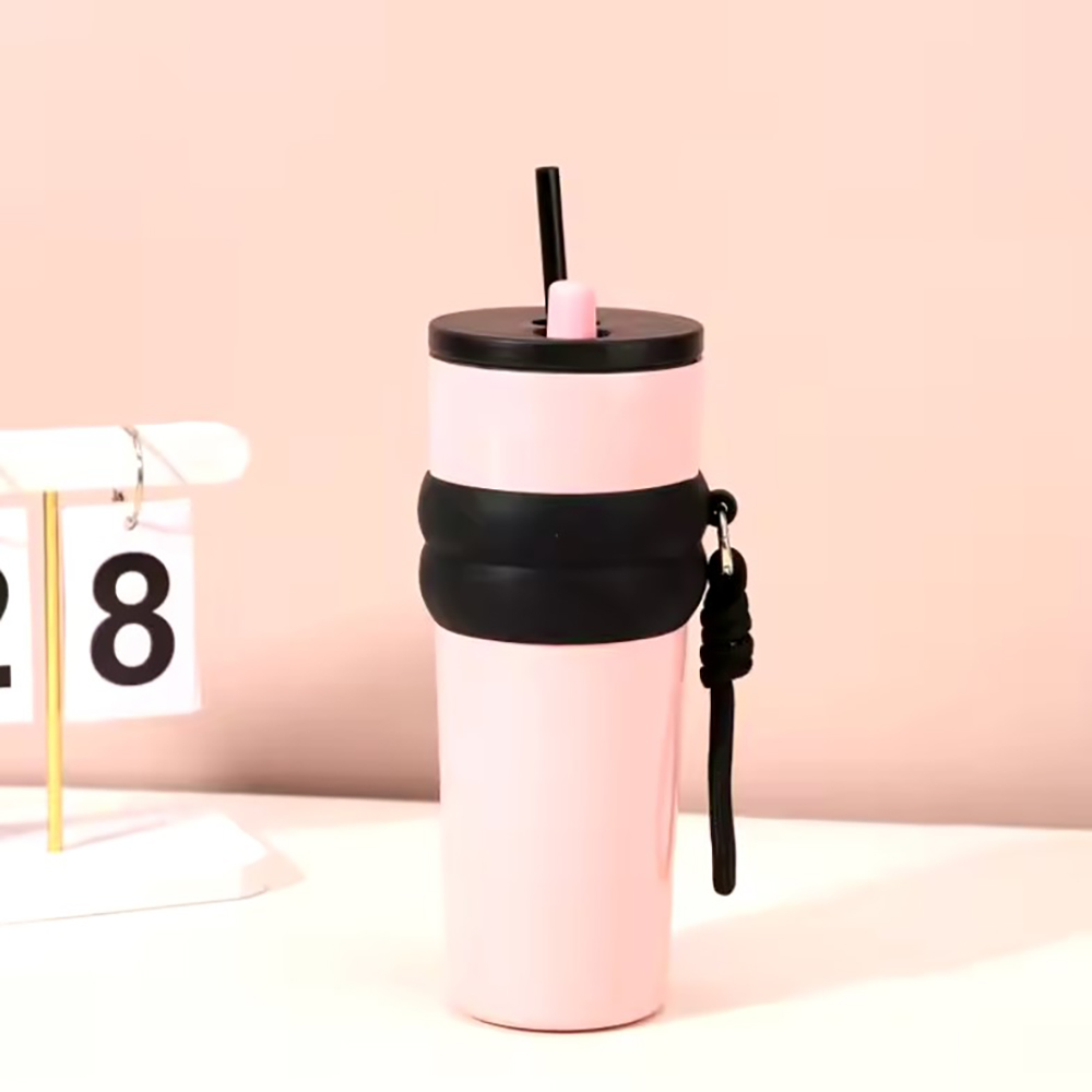 Termék leírás Techsuit - Termosz (THM7) - Autós pohár, Egyszeres pipetta, Rozsdamentes acél 316, 710 ml - Rózsaszín