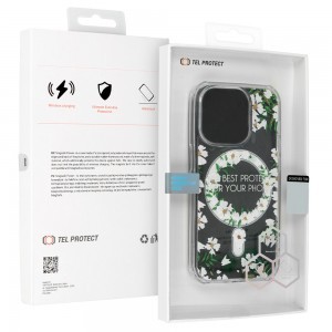 Tel Protect Flower Magsafe - ez egy átlátszó tok, amely egyedi virágmintával van díszítve. A tok védi az okostelefon hátulját, oldalait és képernyőjét. A tokba épített mágnesek kompatibilissé teszik az Apple MagSafe tartozékokkal.