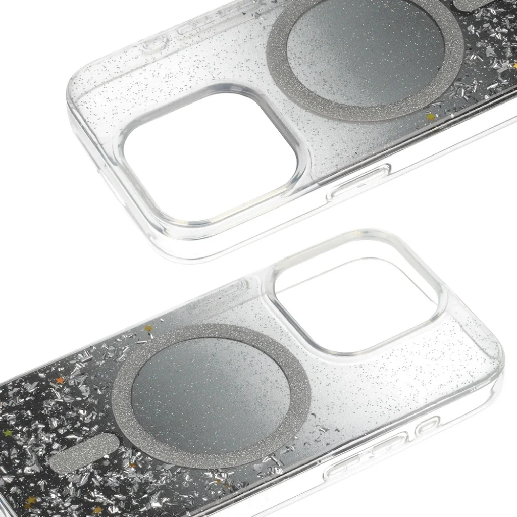 Tel Protect Moonlite Magsafe tok - egy csillogó tok, amely rugalmas TPU anyagból (oldalak) és kemény akrilból (hátlap) készült. A tok védi az okostelefon hátulját, oldalait, kameráját és képernyőjét. A tokba épített mágnesek kompatibilissé teszik az Apple MagSafe kiegészítőkkel.