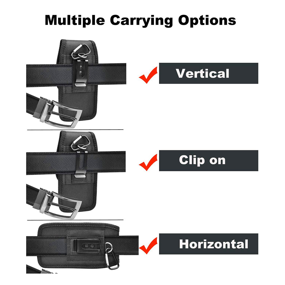 - Függőlegesen az övre fűzve: A táska hátulján található erős hurok segítségével stabilan és biztonságosan rögzíthető az övre, így telefonja mindig kéznél lesz, mégis diszkréten hordható.