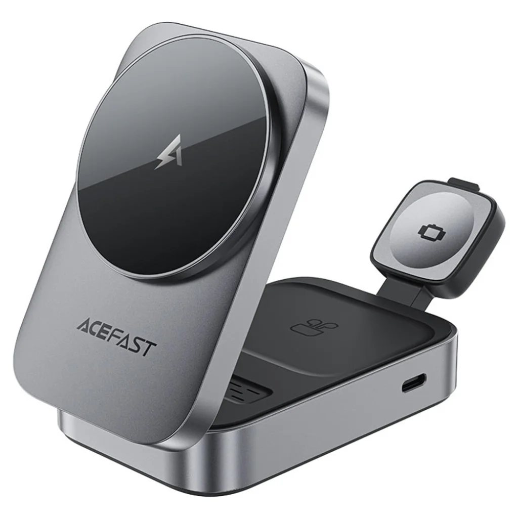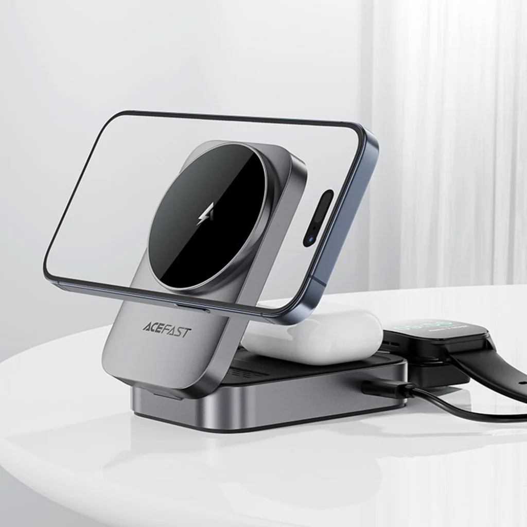 Telefon, Fülhallgató, Apple Watch Acefast Töltőállomás 3 az 1-ben (E22), 22.5W, 2.5A, Összecsukható - Fém Szürke