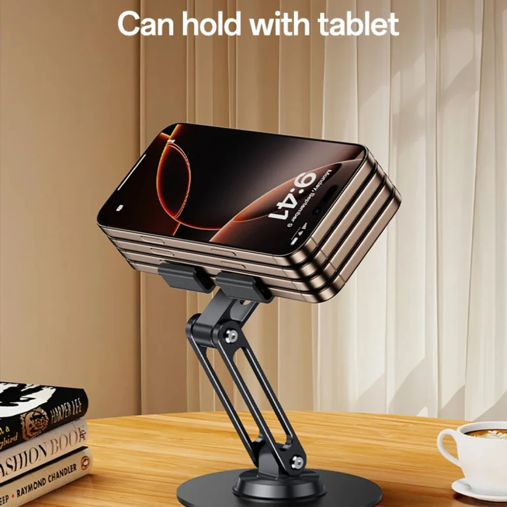 A minőségi alumíniumból készült tartó nemcsak prémium megjelenésű, hanem rendkívül strapabíró is. Az optimalizált súlyelosztás és az ultra stabil, súlyozott kerek talp garantálja, hogy még a nagyobb és nehezebb tabletek is biztonságban és stabilan álljanak anélkül, hogy billegnének vagy elmozdulnának. A részletesen kidolgozott forgató szerkezet hosszú távú, megbízható használatot ígér.