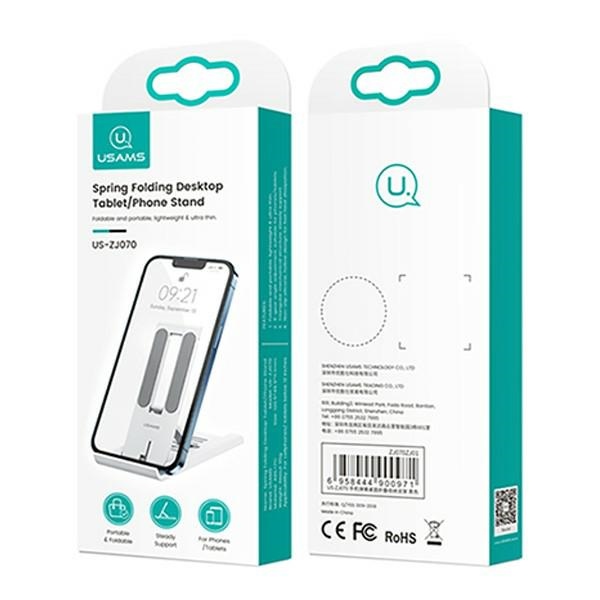 USAMS univerzális állítható asztali tartó bármilyen telefonhoz vagy tablethez. Az univerzális tartó otthoni és irodai használatra ideális videónézéshez, olvasáshoz, tanuláshoz, videohívások lebonyolításához és videokonferenciák tartásához. Előnyök: - Könnyű beállítás a kívánt látószögre a hat szintű állíthatóságnak köszönhetően. - A tartó hátoldala és a horony csúszásgátló anyaggal van bevonva, hogy megakadályozza a csúszást és a karcolódást. - A hátlapon található mélyedés segít növelni a légáramlást a hő elvezetése érdekében, megakadályozva a telefon túlmelegedését.