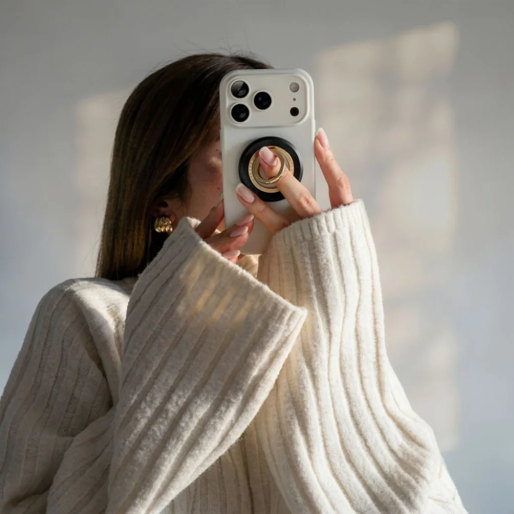 Az egész kiváló minőségű, kellemes tapintású anyagokból készült, amelyek kényelmet és funkcionalitást biztosítanak minden helyzetben. A mágneses tartó közvetlenül a telefon vagy a MagSafe-es tok hátuljára szerelhető, nyomok és sérülések nélküli rögzítést biztosítva. A kompakt kialakítás nem növeli jelentősen a készülék méreteit, miközben teljes funkcionalitást és esztétikumot megőriz.
