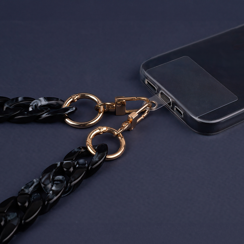 A telefonlánc nemcsak stílusos kiegészítő, hanem mindenekelőtt funkcionális elem, amely biztosítja a telefon biztonságát bármilyen helyzetben. A lánc hossza 1,2 méter, amely lehetővé teszi, hogy kényelmesen átdobd a válladon, megkönnyítve az elérést és a készülék használatát. A készlet tartalmaz univerzális tartókat és karabinereket is, amelyek lehetővé teszik a rögzítés beállítását az preferenciáid szerint. Egy speciális betét a tokhoz lehetővé teszi a lánc zökkenőmentes rögzítését, így könnyen alkalmazkodik különböző típusú tokokhoz vagy borítókhoz.
