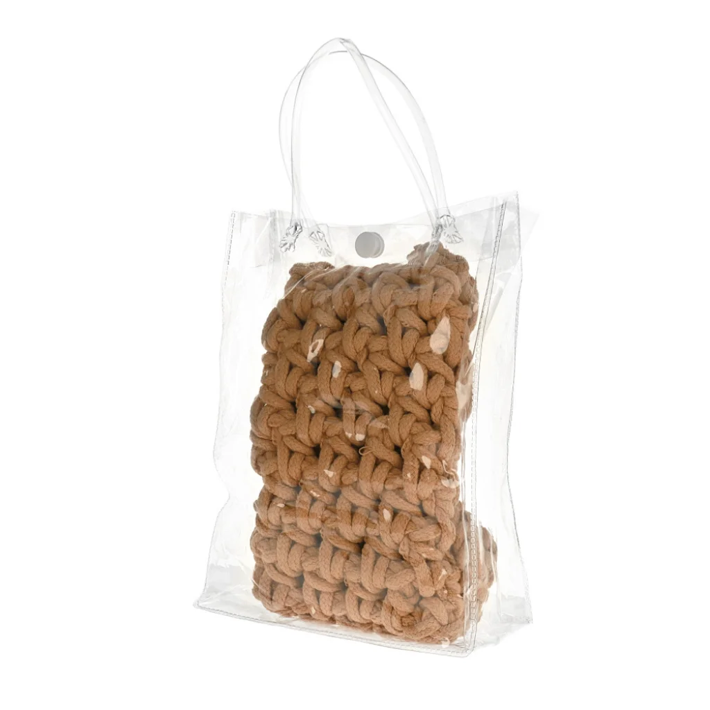 Telefonos horgolt táska – Design 1 Bézs | Bohém stílus kézzel készített horgolással -Kézzel szőtt design – Vastag fonalból készült stílusos csomózott horgolt mintában.
