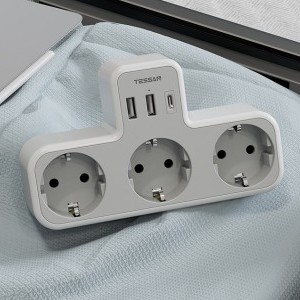 A Tessan TS-323-DE-C fali csatlakozó tökéletes választás irodai és otthoni használatra, akár a konyhában, hálószobában vagy nappaliban is. Három AC aljzattal, két USB-A porttal és egy USB-C porttal rendelkezik, így egyszerre akár hat eszközt is csatlakoztathat hozzá. Átgondolt kialakításának köszönhetően nem foglal sok helyet, és könnyen szállítható. Emellett könnyedén elbír akár 3600 W-os terhelést is, lehetővé téve a legtöbb népszerű eszköz csatlakoztatását.