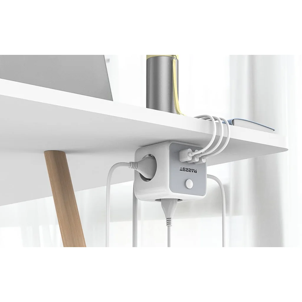 Mondjon búcsút a kusza kábeleknek és a rendetlenségnek az íróasztalon. Az átgondolt kialakításnak köszönhetően a TESSAN elosztó kis helyet foglal, és elősegíti az optimális térszervezést. Szabadon csatlakoztathatja kiválasztott eszközeit, anélkül, hogy aggódnia kellene attól, hogy egy nagy csatlakozó vagy adapter blokkolja a megmaradt aljzatokat és portokat. Lehetősége van arra is, hogy a terméket az íróasztal alá rögzítse – a készletben található öntapadós alátét teszi ezt lehetővé. Ennek eredményeként még több értékes helyet takaríthat meg!