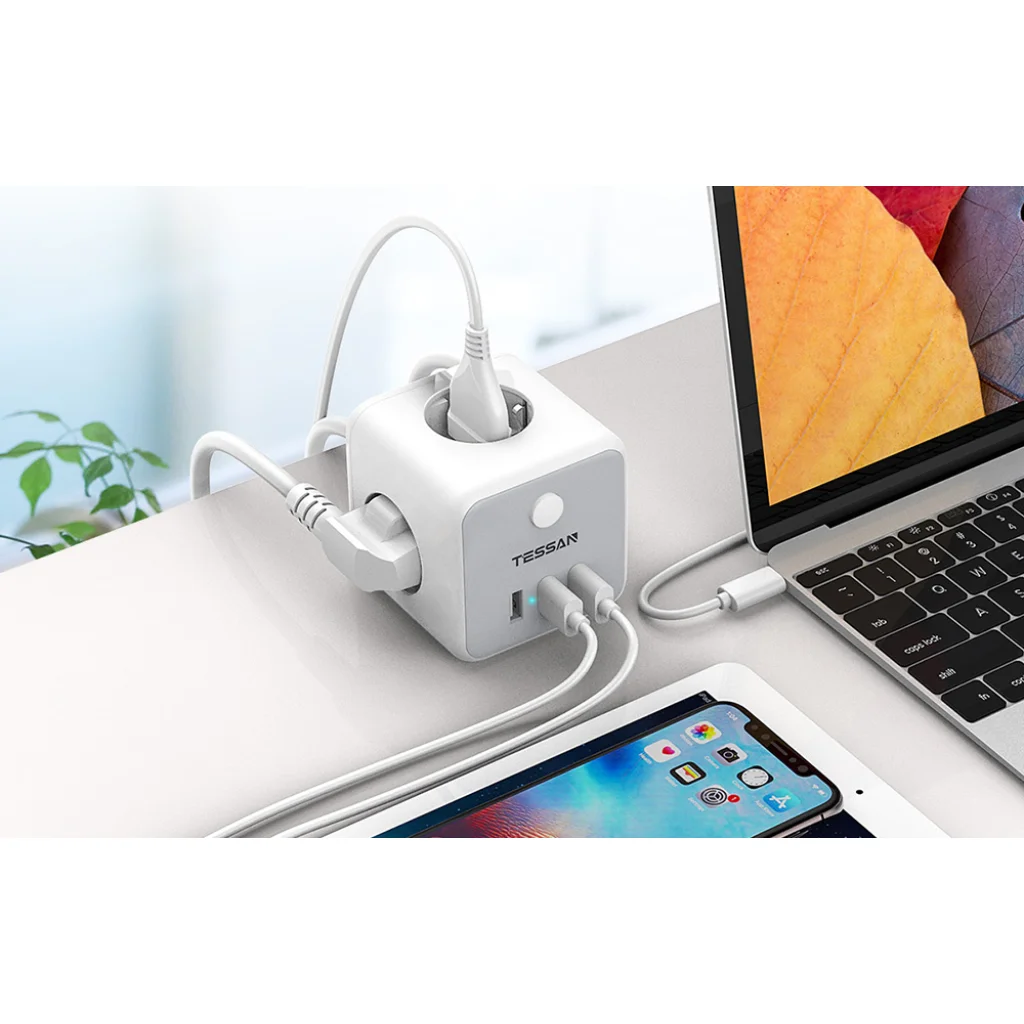 A 3 elérhető váltóáramú aljzattal, 2 USB-A porttal és 1 USB-C porttal könnyedén csatlakoztathat akár 6 eszközt egyidejűleg az elosztóhoz. Csatlakoztathatja okostelefonját, laptopját, táblagépét, asztali ventilátorát, kis lámpáját és légnedvesítőjét – a lehetőségek valóban szélesek.