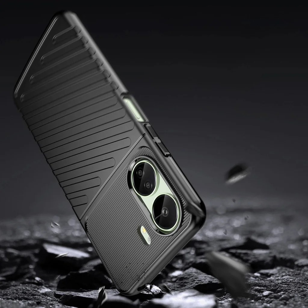 Xiaomi Redmi 13c páncél tok a Thunder Case sorozatból fekete színben A Thunder Case sorozat hőre lágyuló és tartós anyagból készült, ami jó rugalmasságot biztosít. A tok kifejezetten a Xiaomi Redmi 13c készülékhez készült, és tökéletesen védi a telefont a leesés vagy karcolás okozta károsodásoktól (például zsebben hordott kulcsok által). A kijelzőt és a hátsó kamerát körülvevő emelt szélek védik a telefont a karcolódástól, amikor sík felületre helyezik. Rendelkezik érzékeny gombokkal és portok kivágásaival. Tökéletes azok számára, akik értékelik a stílust, a minőséget és szeretnének gondoskodni készülékükről.
