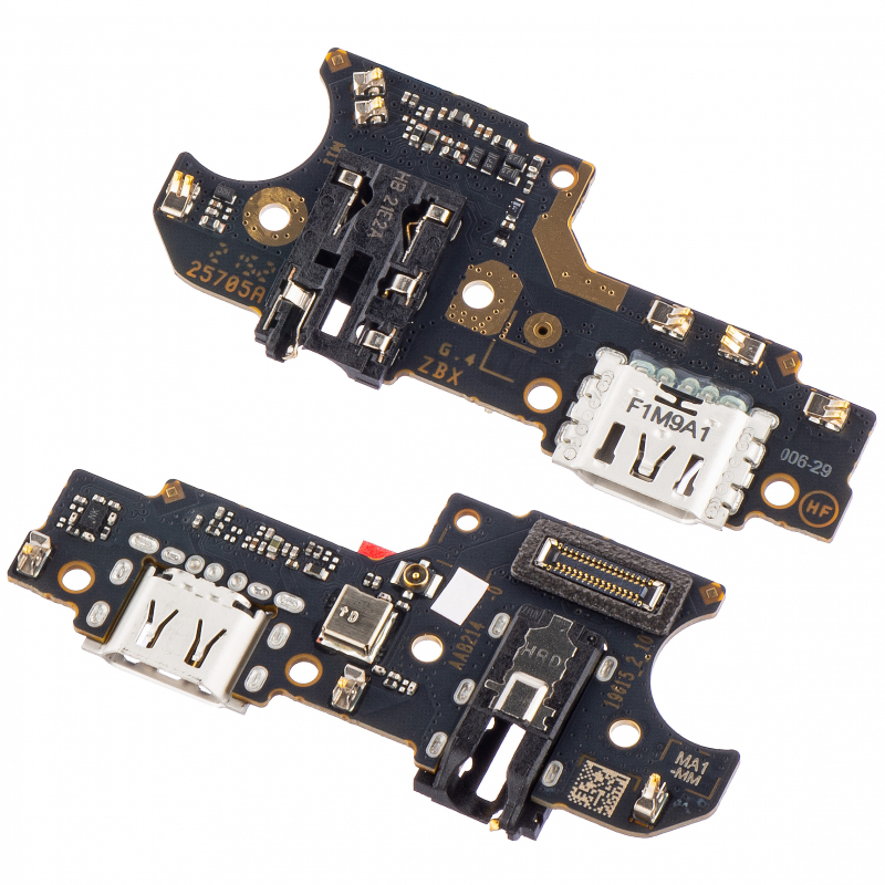 Töltőport Flex / Panel a Realme C25Y-hez, Service Pack 4908563. Eredeti Realme alkatrész, amely a sérült alkatrész cseréjére szolgál. Töltőcsatlakozóval, audiocsatlakozóval és mikrofonnal van ellátva. Kompatibilis modellek: Realme C25 (RMX3191, RMX3193).