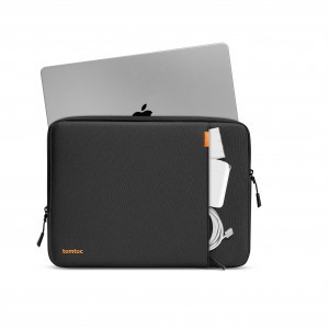 - Letisztult design és elegancia: A klasszikus fekete szín, a letisztult vonalak és a jellegzetes narancssárga Tomtoc logó modern és professzionális megjelenést kölcsönöz a toknak. Vékony profiljának köszönhetően könnyedén elfér bármilyen hátizsákban, táskában vagy akár önállóan is hordozható.