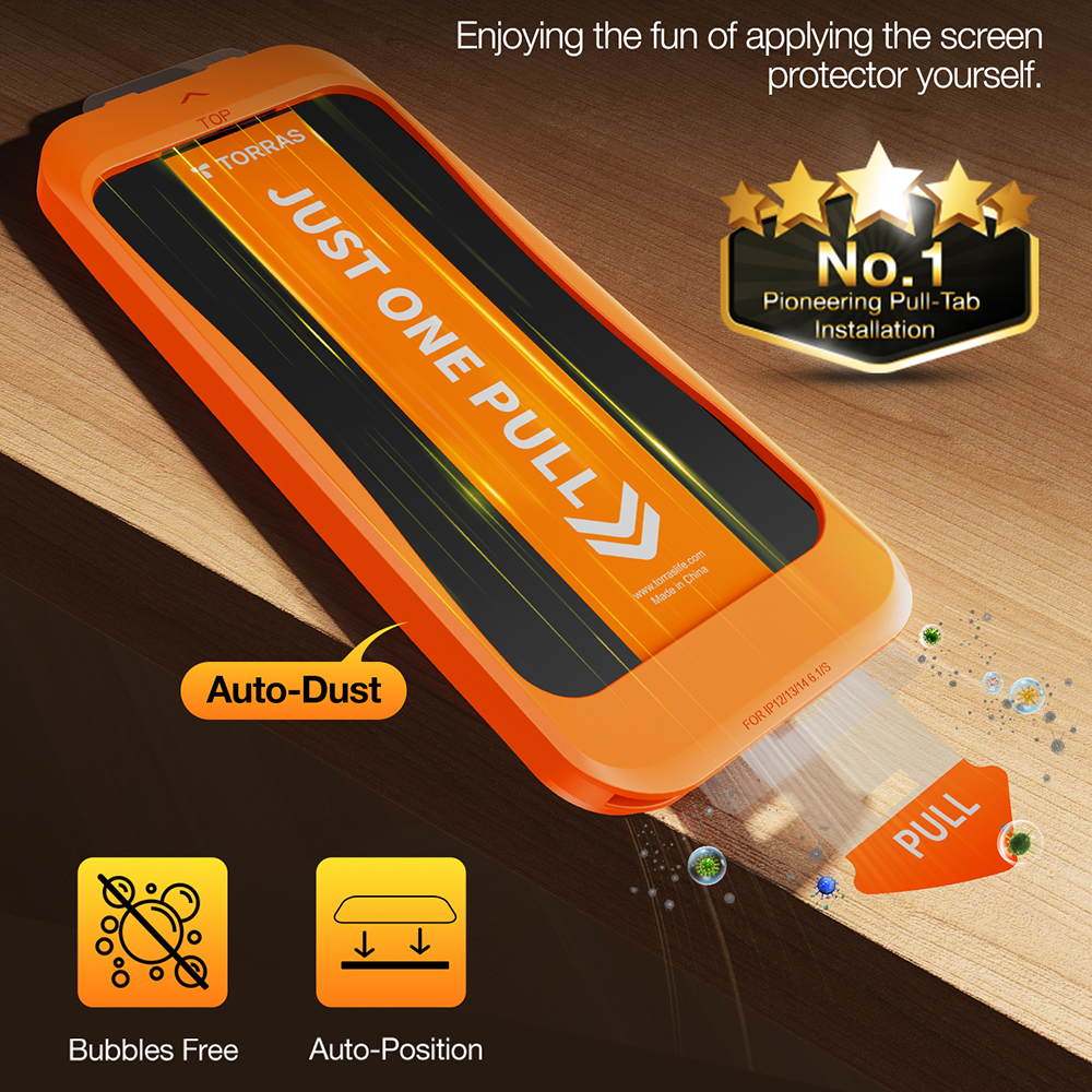 Felejtse el a bonyolult felhelyezést és a bosszantó légbuborékokat! A Torras GlassGo Telepítő Mester rendszerével az iPhone 16 átlátszó üvegfóliájának felhelyezése sosem volt még ilyen egyszerű és pontos. A csomagban található innovatív telepítő keret, a "Just One Pull" technológia segítségével, garantálja a tökéletes illeszkedést és a buborékmentes végeredményt:
