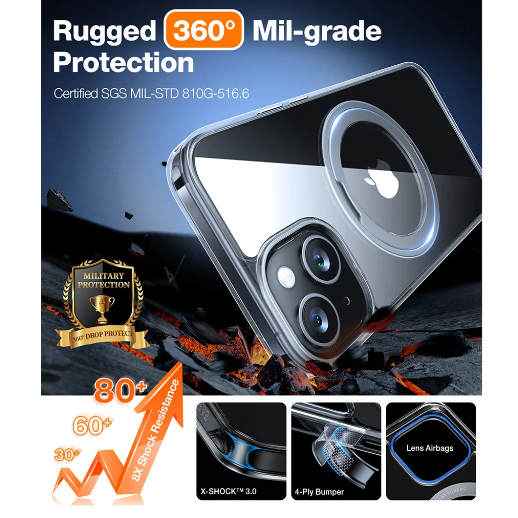 - 8X ütésállóság: A fejlett X-SHOCK™ 3.0 technológiával és a négyrétegű (4-Ply) ütéscsillapító lökhárítóval felszerelt tok nyolcszoros védelmet biztosít a mindennapi ütések és leejtések ellen.