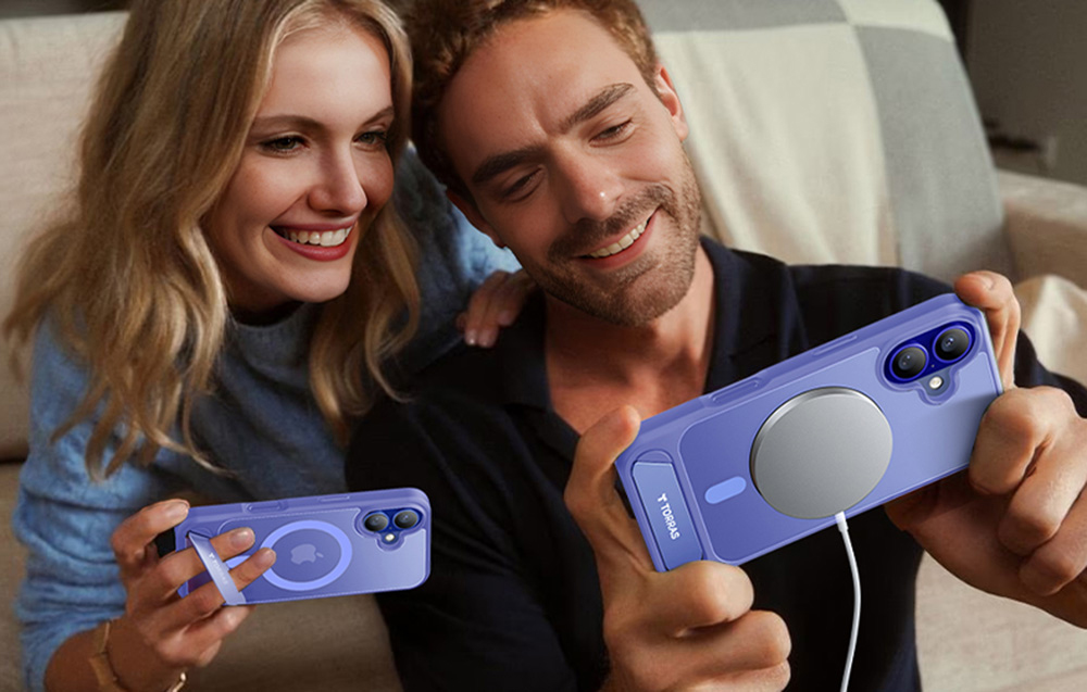 A Torras Pstand sorozatú tok iPhone 16 készülékhez mágneses kialakítású, stabil állványt kínál a kényelem és a készülék védelme érdekében. Gyors vezeték nélküli töltést is lehetővé tesz, a mágneses kiegészítőkkel való kompatibilitás pedig fokozza a funkcionalitását.