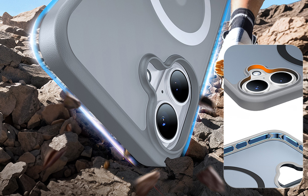 Az X-Shock™ technológiának és a többrétegű kialakításnak köszönhetően a tok négyszer nagyobb ellenállást nyújt a leejtések ellen a standard termékekhez képest. A termék katonai szintű (Mil-Grade) védelmet biztosít a körülbelül 3,6 méter magasságból történő esések ellen. A 360° Airbag technológia teljes védelmet garantál a telefon peremének, elnyelve az ütődéseket, és minimalizálva a sérülések kockázatát. Emellett az emelt szegély tovább védi a lencsét.