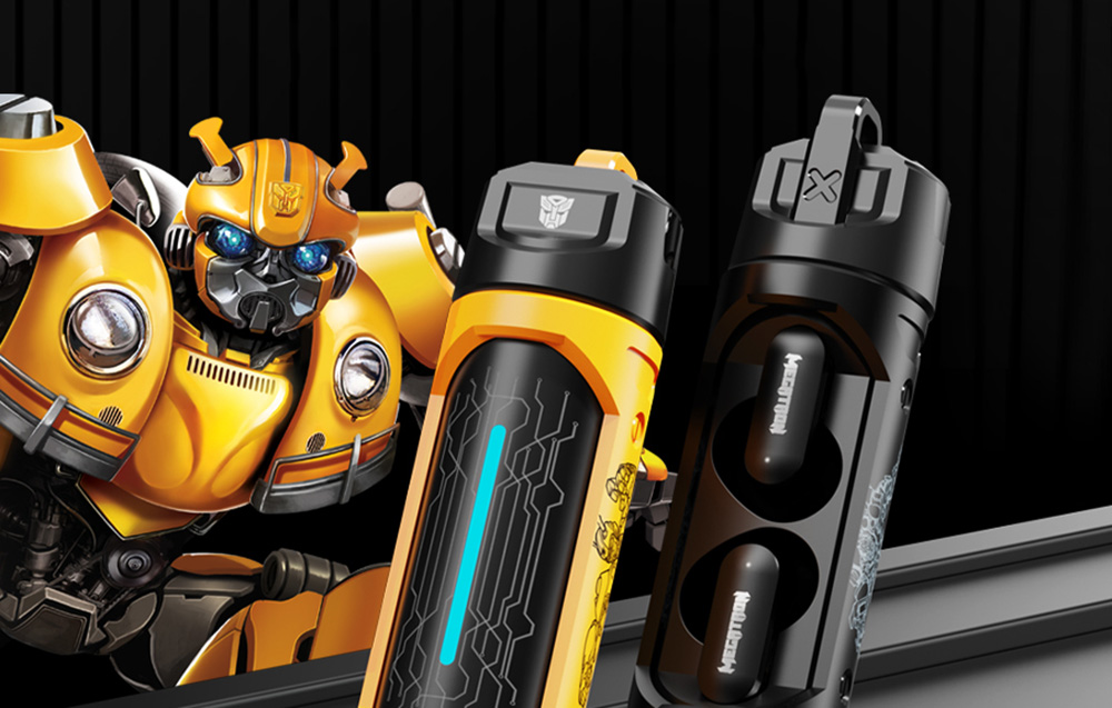 A Transformers TF-T11 fülhallgatók tokja egyedi forgatható dizájnjával tűnik ki. A hengeres tok kék LED jelzőfénnyel modern megjelenést biztosít, ami biztosan elnyeri a technológia rajongóinak tetszését. Ráadásul mechanikus hangokat hallhatunk forgatás közben. A készlet tartalmaz egy praktikus nyakláncot is, amellyel a fülhallgatókat a nyakában viselheti, így nem veszíti el őket.