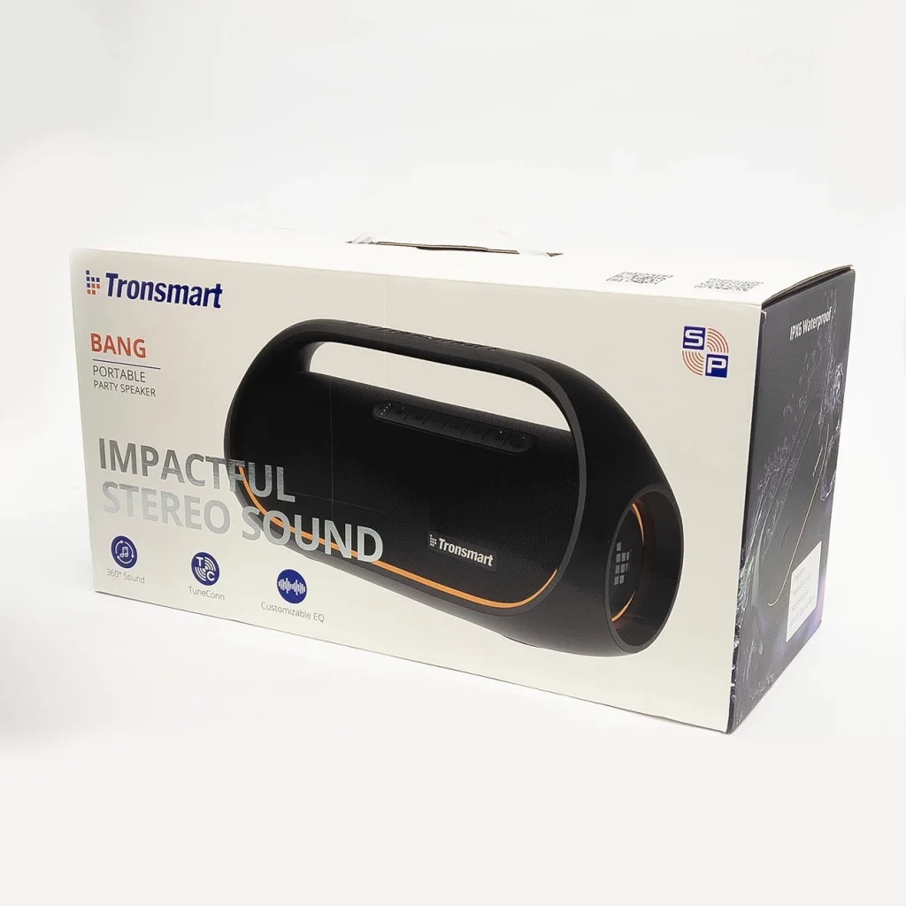 A Tronsmart Bang a kiváló hangminőséget helyezi előtérbe. A 60 wattos RMS teljesítményű audiórendszer, mely két nagy teljesítményű hangszórót és két passzív mélynyomót tartalmaz, garantálja a kristálytiszta hangzást, a telt közép- és magas hangokat, valamint az ütős, rezonáló basszust. A SoundPulse® technológia optimalizálja a hangkimenetet, míg a 360°-os térhangzás valósághű, moziszerű akusztikus élményt nyújt, betöltve a teret zenével minden irányból.